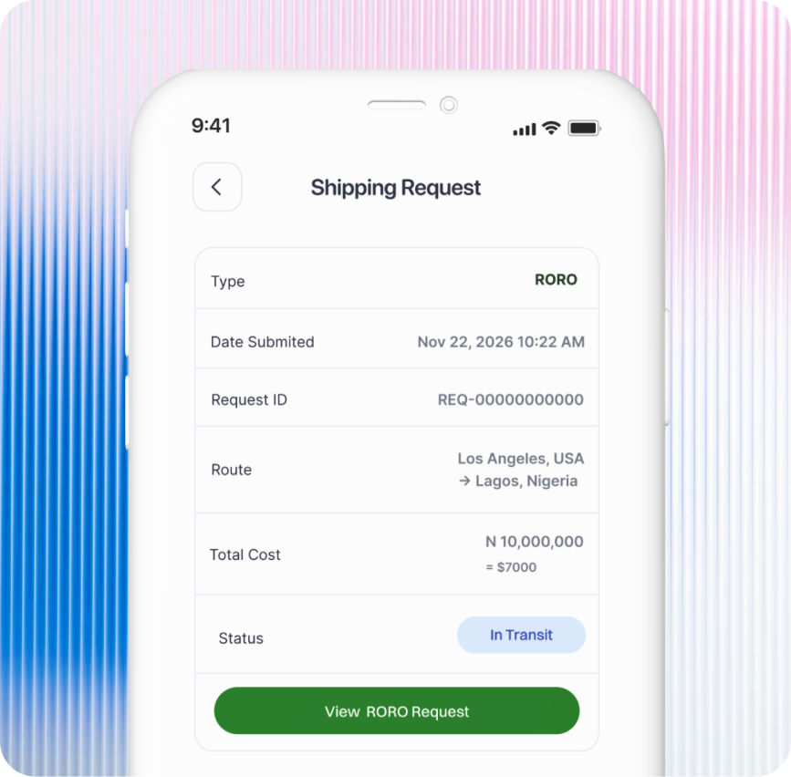 Go to services section and select ship vehicle and choose any of your shipping options( RORO, 4FT or Full Container)